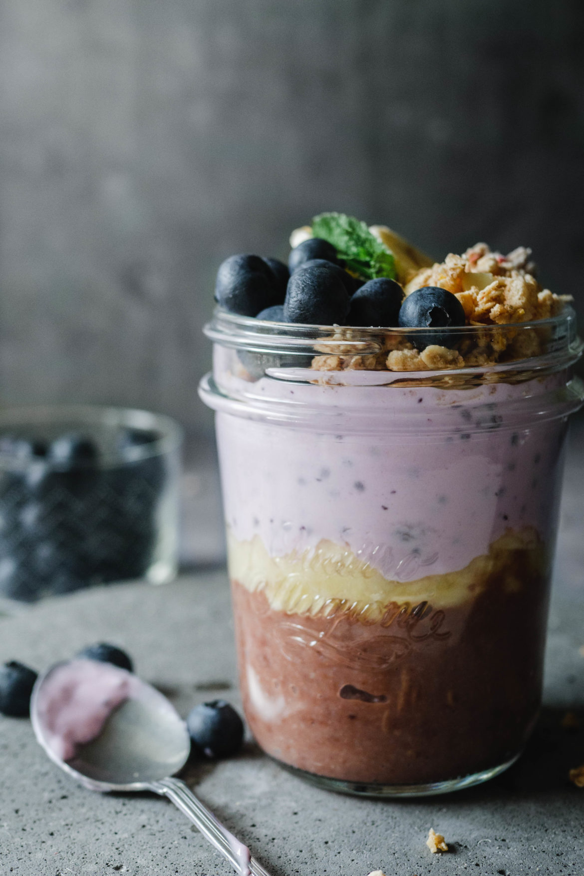 Ha egyből elfogyasztjuk, akkor mehet a tetejére a maradék friss banán, az áfonya és a granola, ha nem, akkor lezárjuk az üveget és másnap reggel, fogyasztás előtt rátesszük a feltéteket.