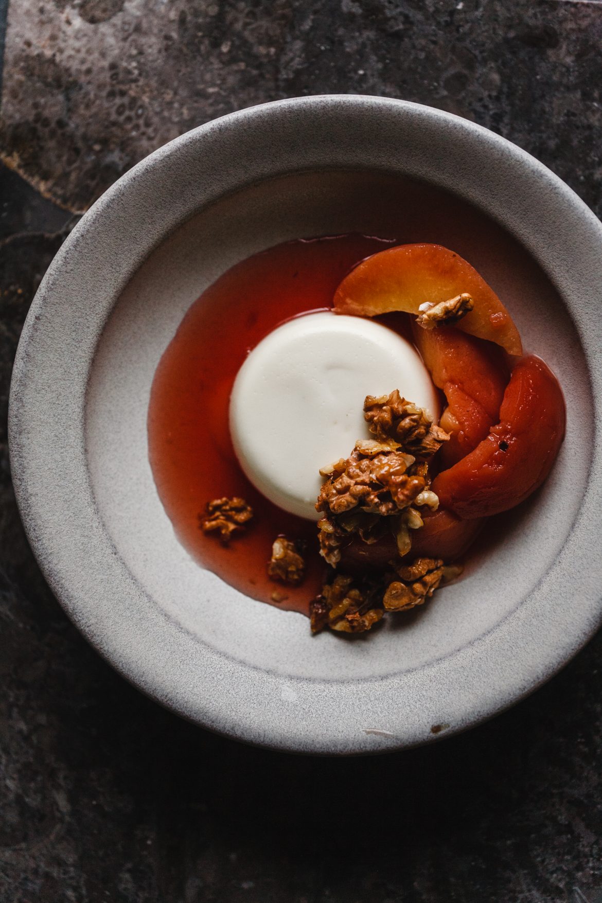 Csináltam hozzá most egy csinos tányérdesszertet, ami nagyon elegánsan néz ki, de semmivel nem bonyolultabb egy tiramisunál. A fűszeres birsalmákat meg ha üvegbe töltöd, kidunsztolod, akkor akár karácsonyig eláll és akár ez a panna cotta lehet az ünnepi desszertetek.