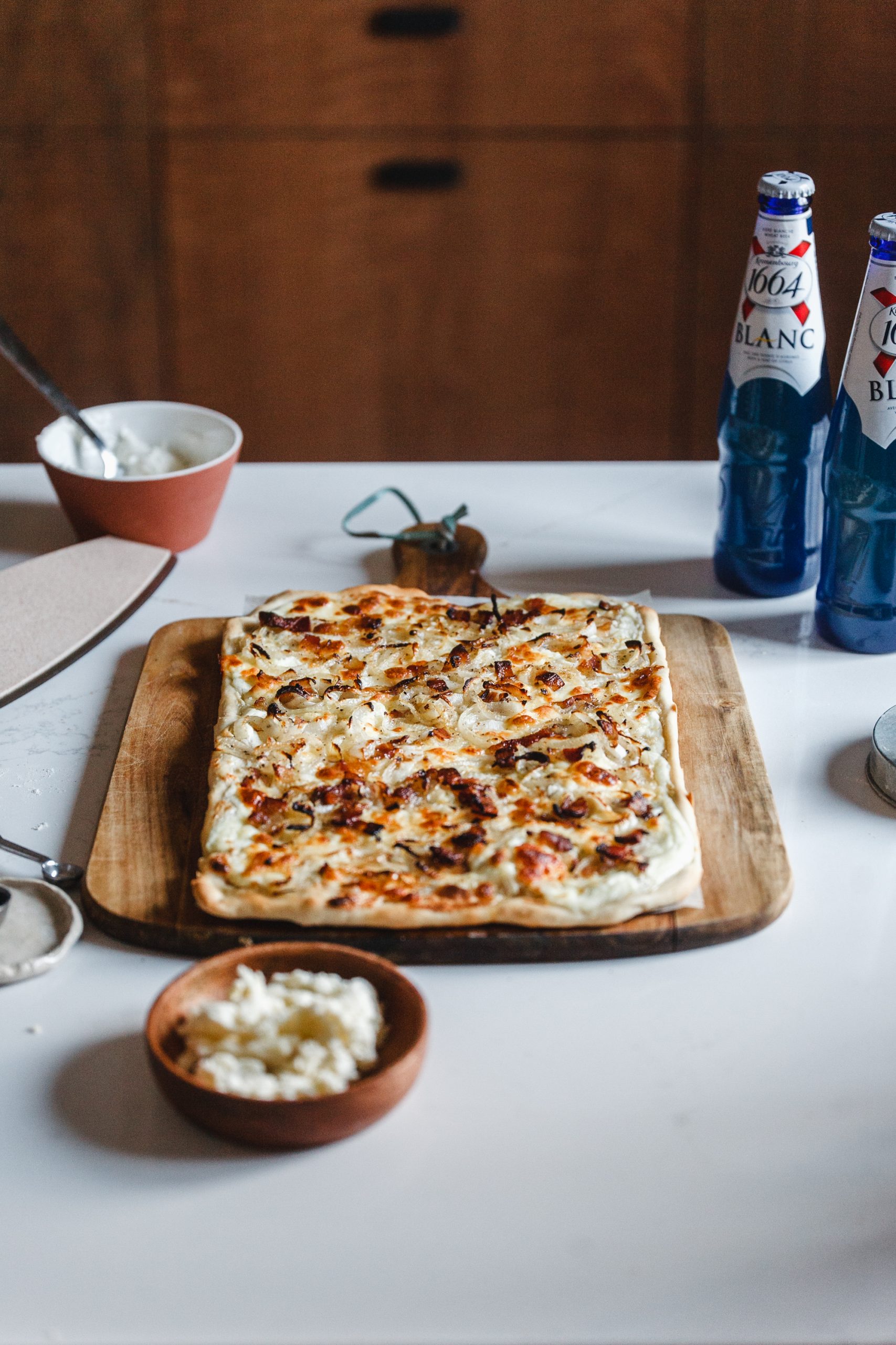 Mondhatnánk azt, hogy a tarte flambée a mi töki pomposunk francia unokatestvére, mert bár hasonlóságok vannak, azért mégis más az élmény, kezdve a tésztával. A tart flambée egy sokkal vékonyabb, ropogósabb kenyérféle, amibe eredetileg még élesztő sem szükséges ahhoz, hogy könnyű és levegős legyen a tészta.