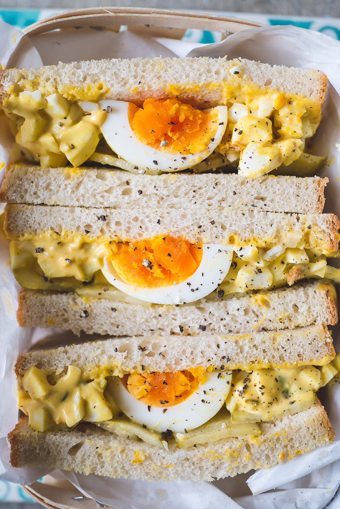 Így húsvétkor érdemes kikeverni egy adagot, mert fényévekkel finomabb lesz tőle a francia saláta, fel lehet vele ütni a tormát, ha túlságosan bika lenne, vagy keverhetitek ehhez az isteni, curry-s tojássalátához is és ilyen csinos kis szendvicseket rakhattok az asztalra!